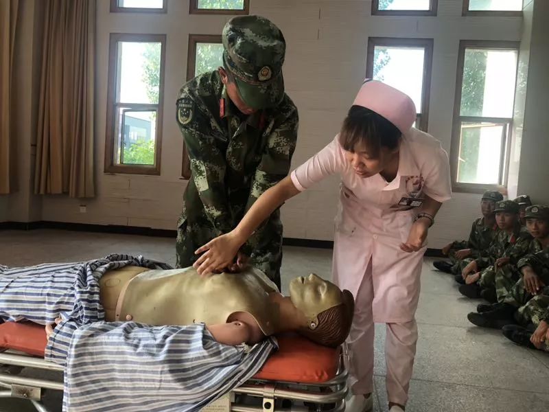 日前,应武警上饶市支队机动中队的邀请,上饶县第三人民医院组织医务人员赴该中队训练基地开展了心肺复苏、战时急救等现场培训和演练活动。